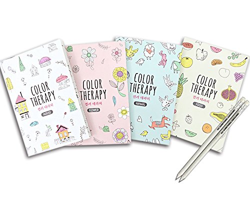 Set of 4 Mini Coloring Books for Adult Relaxation Color Therapy Anti Stress Coloring Books, 16 Pages Each with All Different Theme, Adult Colouring Book of 4.92”X7.20”