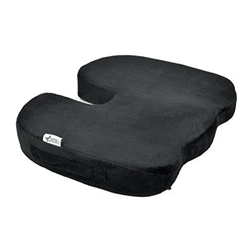 JIDA Orthopedic Comfort Memory Foam Seat Cushion, Office Chair Wheelchairs and Car Seat Pads, For Coccyx Lower Back Support, To Relieve Back & Tailbone Pain and Sciatica (Black)