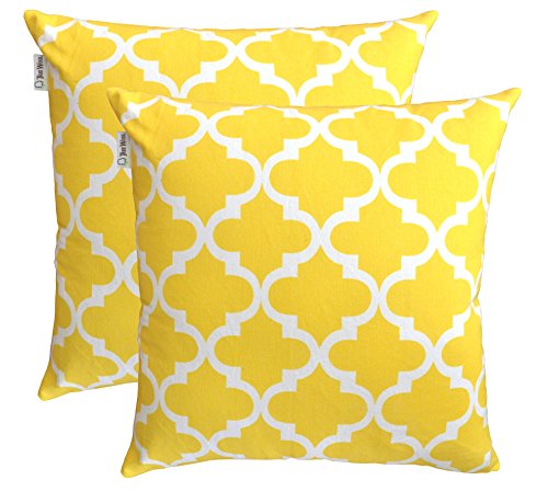 TreeWool Decorative Square Throw Pillowcases Set Trellis Accent 100% Cotton Cushion Cases Pillow Covers (16 x 16 Inches / 40 x 40 cm; Yellow & White) - Pack of 2