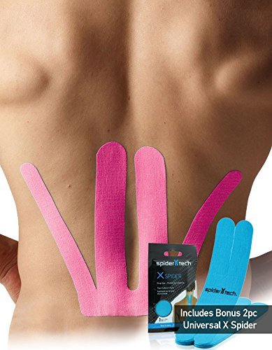 Spider Tech Precut Lower Back Kinesiology Tape with 2 Free X Spiders (Pink)