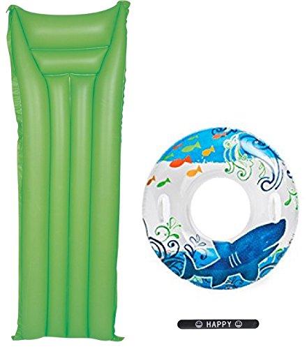 2Set Large Colorful Pool Toys Inflatable Swim Ring Tube Green Air Mattress Lounge Toy for Kids Boys Girls Adults with Happy Slapstick