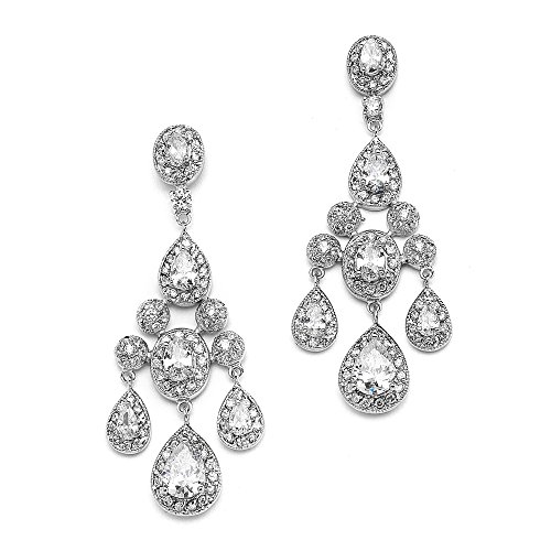 Mariell Vintage Glam CZ Wedding or Pageant Chandelier Earrings with Oval-Cut Gems & Pear-Shaped Dangles