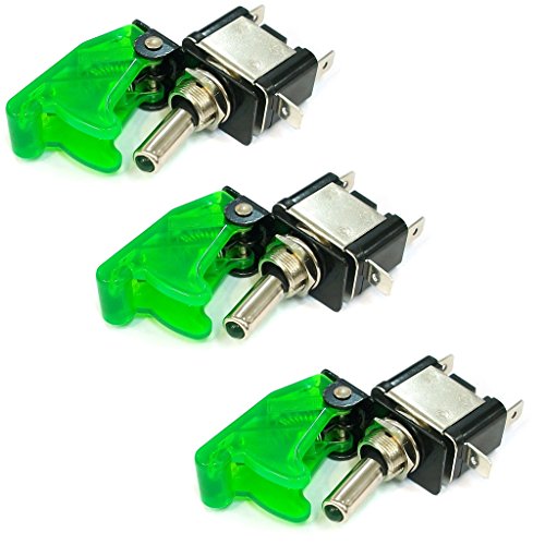 TrendBox 3 Sets (GREEN LED Light + GREEN Auto Cover) Toggle Flick SPST Switch 12V 20A ON/OFF Control Car Truck Boat ATV Airplane