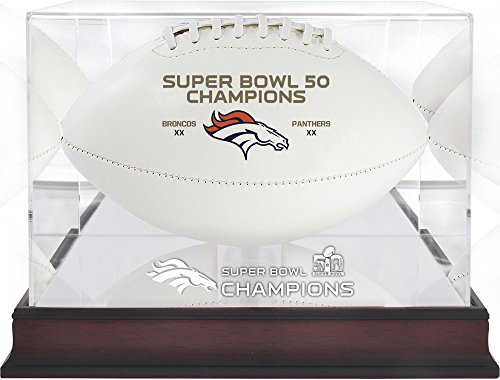 Denver Broncos Super Bowl 50 Champions Mahogany Logo Display Case with Champions White Panel Football - Fanatics Authentic Certified