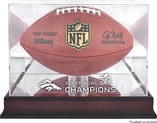Sports Memorabilia Denver Broncos Mahogany Football Super Bowl 50 Champions Logo Display Case - Football Logo Display Cases