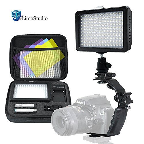 LimoStudio 160 LED Video Light Lamp Dimmable Panel and Charger for DSLR Camera DV Camcorder with Hard Carry Case, Camera Bracket Mount Heavy Duty L-bracket with Standard Flash Shoe Mounts, AGG1805