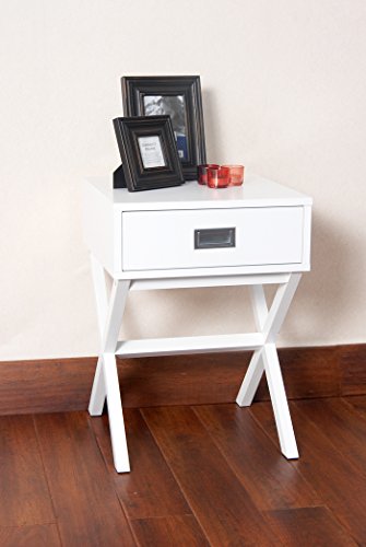 White Finish Modern X-Shape Accent Side End Table Nighstand with Drawer