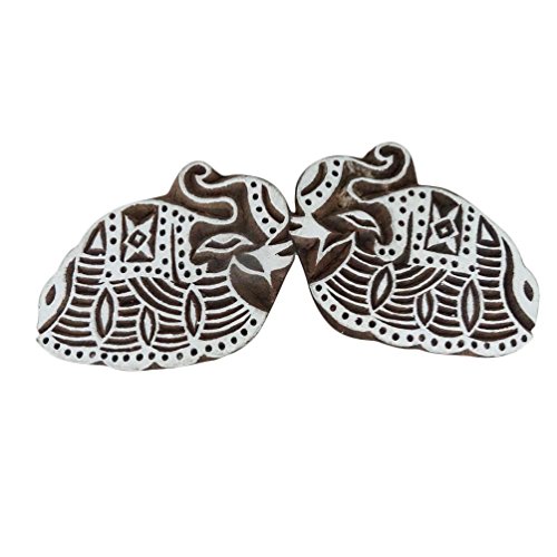 Textile Fabric Printing Block Stamp Wooden Carved Elephant Design Wall Decor Indian Stamp Block Gift Set Of 2 Pcs