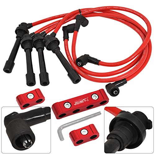 For 240sx Silvia S14 KA24 2.4L Ignition System Silicone Spark Plug Wires + Aluminum Spacers Red