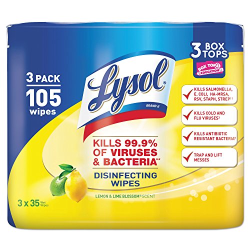 LYSOL Brand 82159CT Disinfecting Wipes, 7x8, White, Lemon & Lime Blossom, 35 per Canister, 3 per Pack (Case of 4 Packs)