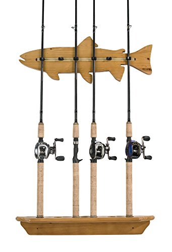 Organized Fishing Fish Wall Rack for Fishing Rod Storage, Holds up to 6 Fishing Rods, Oak Finish