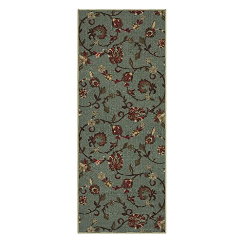 Kapaqua Custom Size Teal-Green Floral Rubber Backed Non-Slip Hallway Stair Runner Rug Carpet 31 inch Wide Choose Your Length 31in X 4ft