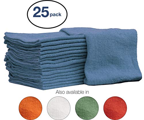 Nabob Wipers Auto-Mechanic Shop Towels, Shop Rags 100% Cotton Commercial Grade Perfect for Your Garage, Auto Body Shop & Bar Mop (12x12) inches, 25 Pack, (Blue)