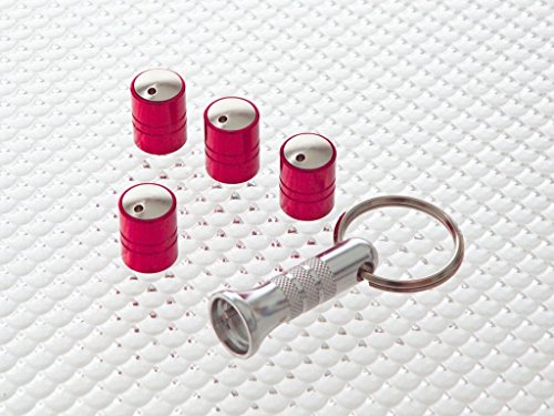 Richbrook 'Spinning' Anti-Theft Lockable Aluminium Tire Valve Stem Caps (Pack of 4 + Lock) (Red)