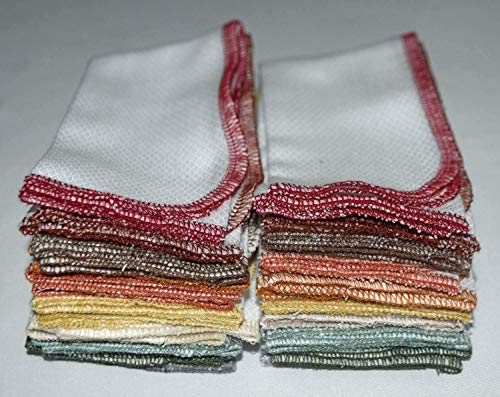 1 Ply 11x12 Inches White Cotton Birdseye Paperless Towel Set of 20 Assorted Earthtone Edging