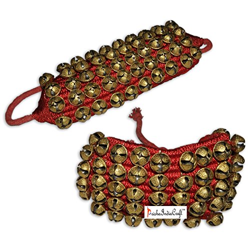 Prisha India Craft ® Kathak (5) Five Line Big Bells (16 No. Ghungroo) Good Quality Ghungroo Red Pad Indian Classical Dancers Anklet Musical Instrument Bharatnatyam, Kuchipudi, Odissi Ghungru