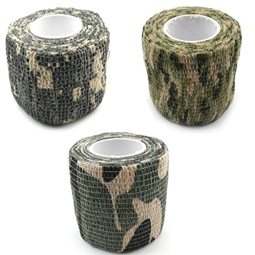 TRENDBOX 1 Set (3 Rolls) Multi-Functional 5cmx4.5m Camo Camouflage Stealth Waterproof Tape Wrap for Hunting Camping Hiking Outdoor Activities