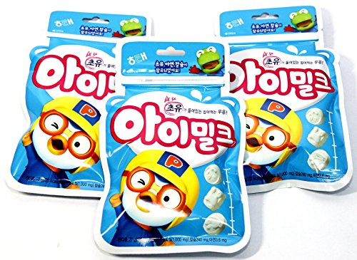 Korean Haitai Pororo I Milk Chewing Candy with Colostrum Zinc Calcium for Kids 27oz (Pack of 3)