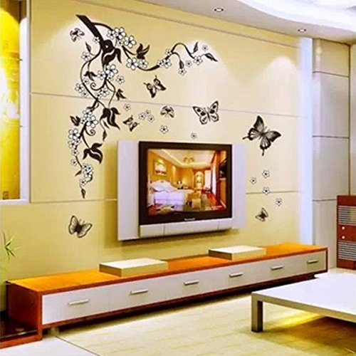 BML DIY Wall Stickers Home Decor Flowers Butterfly Removable Wall Paper Stickers Art//Casa flores de la decoración de la mariposa de la pared removible pegatinas de