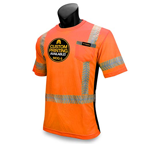KwikSafety (Charlotte, NC) DISCOVERY (Crew Neck FISHBONE Tape) Class 2 ANSI High Visibility Safety Shirt with Pocket Reflective Tape Construction Security HiVis Clothing Men Short Sleeve Orange Large