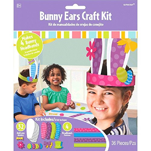 amscan Egg-Stra Special Easter Party Springtime Bunny Ears Accessory Craft Kit, Paper, Pack of 36 Costume