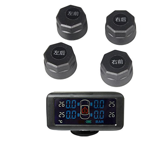 Leitu Wireless Car Chargeable TPMS Kits Display Monitor with 4 External Sensors Transmitters Pressure Temperature Bar Psi
