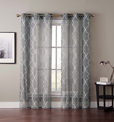 GoodGram 2 Pack: Quatrefoil Trellis Embossed Semi-Sheer Curtains by Assorted Colors (Silver)