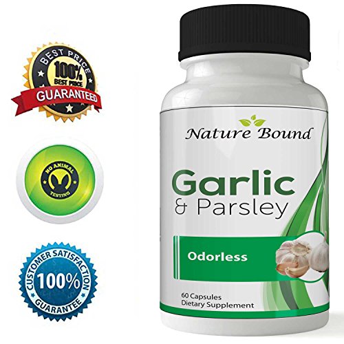Odorless Garlic and Parsley Supplement With 100% Chlorophyll Vitamin C Calcium Sativum Vitamin K Powerful Antioxidant #1 Health and Vitality Detoxifier Boosts Energy For Men Women Teens Nature Bound
