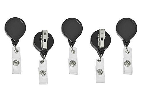 No Twist Retractable Badge Holder ID Card Holder Reel with Swivel-Back Alligator Clip Black Pack of 5