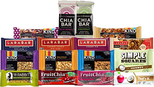 Gluten-Free Natural Healthy Bars & Snacks 16 Flavor Variety Sampler Including Kind Bar, Larabar, Health Warrior, 18 Rabbits, Kind Healthy Grains, That's It, and more, Non-GMO (Pack of 16)