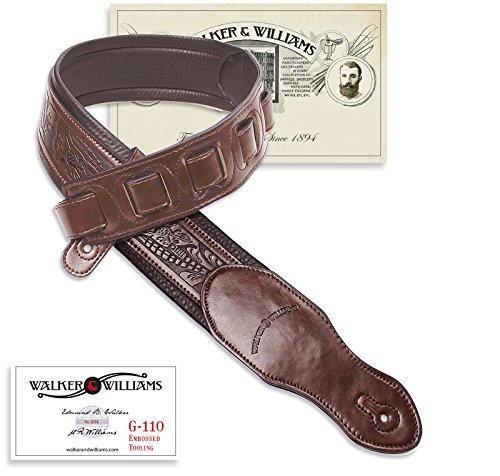 Walker & Williams G-110 Mahogany Brown Padded Guitar Strap with Embossed Tooling