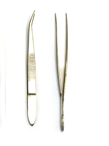 AOSTEK All purpose Labs Metal Bent Tip Tweezers 4.25" Curved Steel Forceps Metal Bent Tip Tweezers Stainless Steel Fine Point Curved Tips