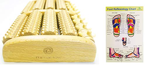 TheraFlow Large Wooden Dual Foot Massager Roller, Pine color, large, Comes With Reflexology Chart