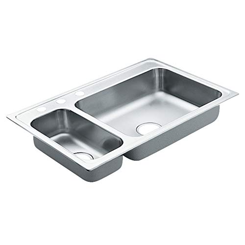Moen G202853 2000 Series Stainless Steel 20 Gauge Double Bowl Drop in Sink, 33" x 22"