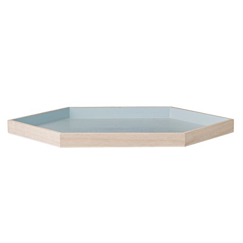 Bloomingville Hexagonal Wood Tray with Sky Blue Bottom, Multicolor