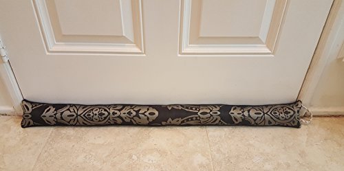 Monikas Marketplace 36 Inch Door Draft Stopper with Bag, Black / Silver