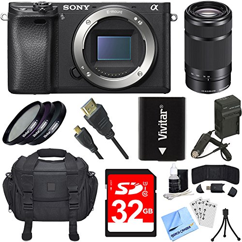 Sony ILCE-6300 a6300 4K Mirrorless Camera Body Bundle with 55-210mm Zoom E-Mount Lens, 49mm Filter Kit, Camera Bag, 32GB Memory Card, Battery, HDMI Cable and Mini Tripod