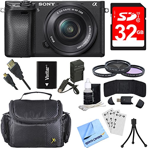 Sony Alpha a6300 ILCE-6300 4K Mirrorless Camera w/ 16-50mm Power Zoom Lens Bundle includes a6300 Camera, 16-50mm Zoom Lens, 40.5mm Filter Kit, 32GB SDHC Memory Card, Beach Camera Cloth and More!