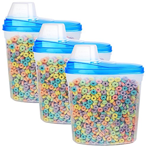 3 Pack- Large Plastic Cereal Keeper / Snack Dispenser Canister Set - Dry Food Storage Holder Containers, w/ Scoop on Lid, Dimensions: 10.57" x 5.25" x 13", Capacity: up to 23.75 cups / 190 oz