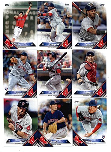 2016 Topps Baseball Series 1 Boston Red Sox Team Set of 12 Cards: Rusney Castillo(#75), Clay Buchholz(#77), Mookie Betts(#84), Koji Uehara(#90), Henry Owens(#109), Brian Johnson(#191), Dustin Pedroia(#246), Ryan Hanigan(#260), Brock Holt(#280), Pablo Sand