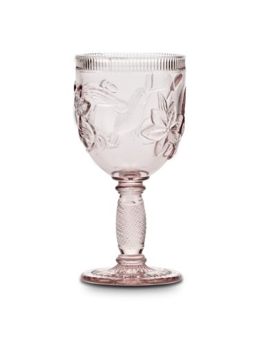 Set of 4 Pieces 7" Pink Glass Embossed Hummingbird Goblet Wine Glasses