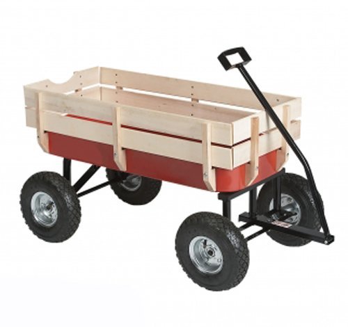 Voyager Tools All Purpose Beach Wagon 330lb Capacity Moving Wagon Red And Light Wood