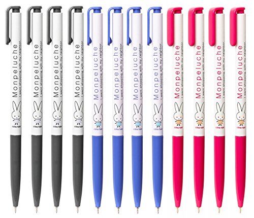 Xeno Shinzi Katoh Monpeluche, 0.38mm, Slim Ballpoint Pen, Black/Blue/Red (Pack of 12)