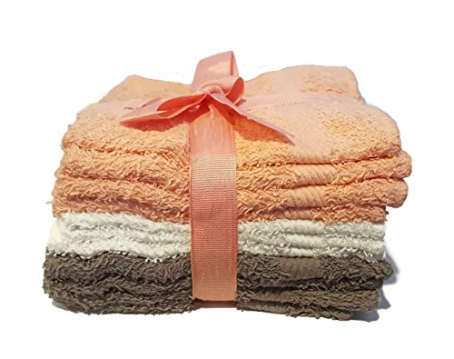 11 Piece Set 100% Cotton Washcloths Peach White and Gray Wash Cloths