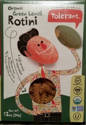 Tolerant Organic Non GMO Rotini (Green Lentil) 6 x 12oz pack