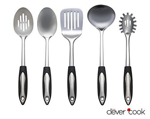 Clever Cook 5 piece Stainless Steel Set of Kitchen Utensils