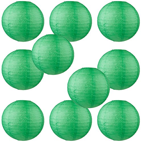 WYZworks Round Paper Lanterns 10 Pack (Dark Green, 10") - with 8", 10", 12", 14", 16" Option