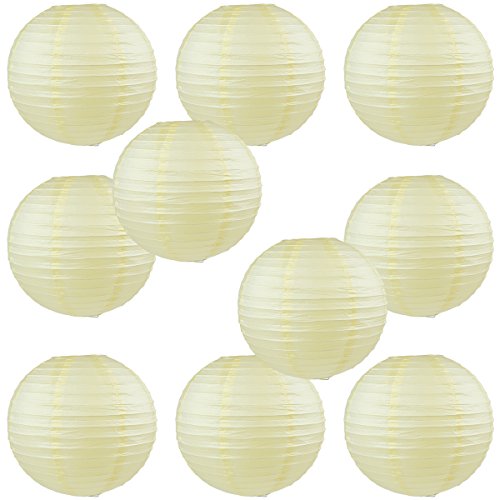 WYZworks Round Paper Lanterns 10 Pack (Ivory Cream, 10") - with 8", 10", 12", 14", 16" Option