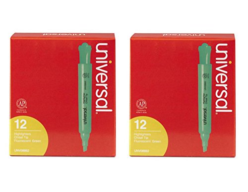 Universal Desk Highlighter, Green, Chisel Tip, Fluorescent, Pack of 24