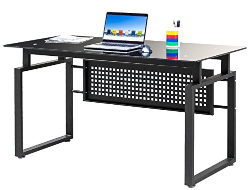 Merax Glass Computer Table with Metal Legs PC Desk Workstation Home Office Desk, Black
